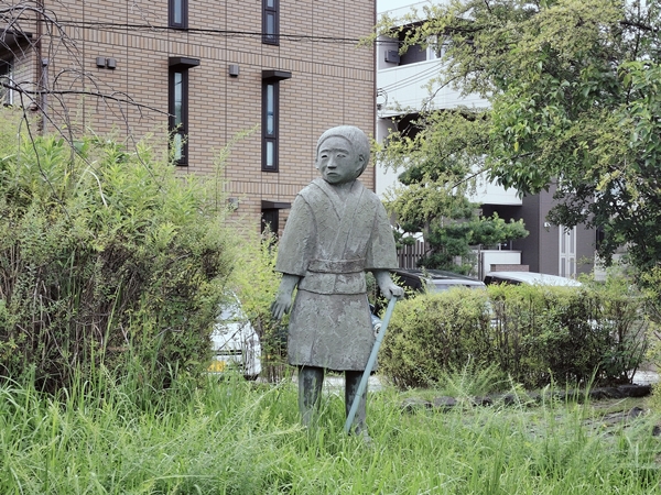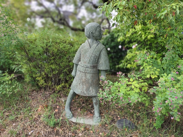 そんなわけで、富田林市の羽曳野丘陵近くの古墳を巡りながら六反池古墳へ。近くのパーキングに車を止めて古墳へ向かいますが、途中に謎の公園を発見。子供の銅像らしきものがいくつか設置されているのですが、説明書きが全くありません。